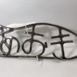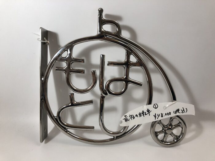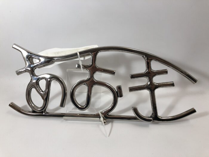 丸棒を手曲げし、丸みを生かしたひらがなの表札となっております。
