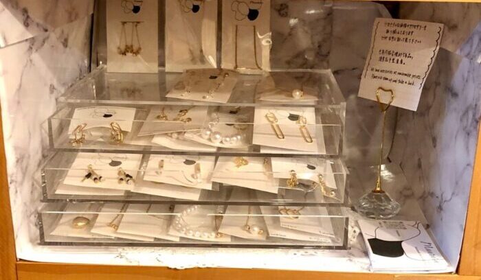 入り口に近い横長のハコニワ(c-13)を使用し、アクセサリーが陳列されております。