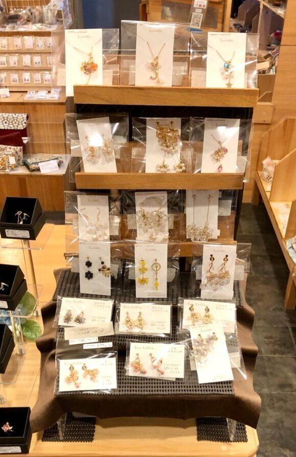 平置きできるハコニワ(i-5)を使用し、ビーズアクセサリーが陳列しております。