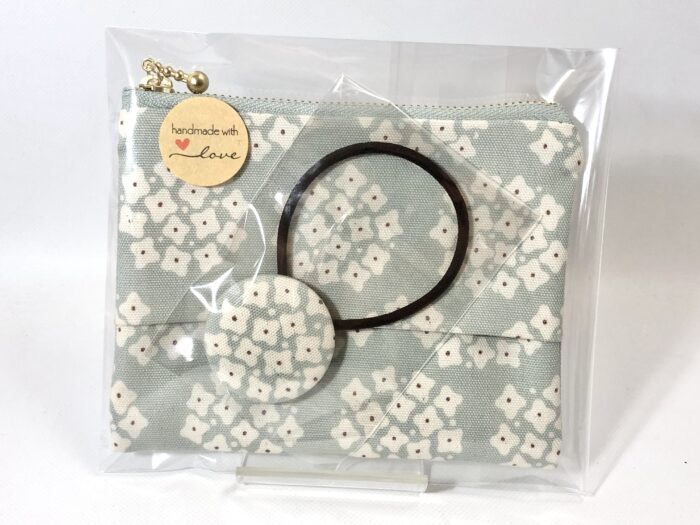 ポーチとお揃い生地のヘアゴム付きです。ポーチ部分にはリップクリームなどの小物が入ります。