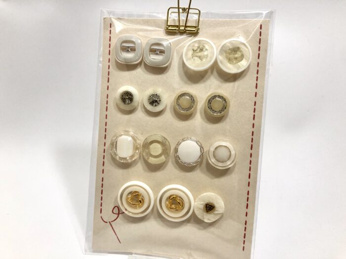 オリジナルの台紙にセレクトしたボタンを糸で縫い付けました。
